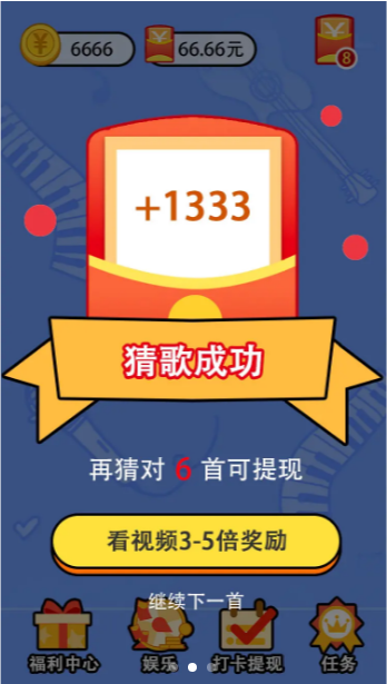 3、以猜歌的方式来持续进行,一旦顺利过关的话,就能在这里获得更多的奖励哦。