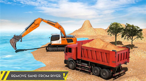 2、快速运转整个挖掘机让所有的沙土能够快速装载到不同的机械运输车,体现你的个人技术能力。