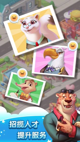 1、现在是时候在动物城建成最大的购物中心了,升级并扩展商店,解锁更多种类的商店和客户;