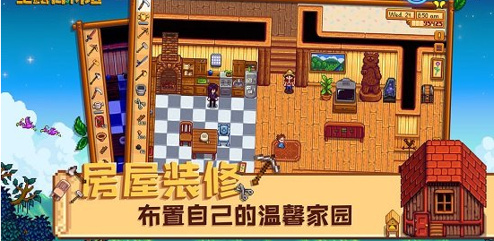 在自己的农场中,玩家可以种庄稼、饲养牲畜,可以打造建筑或装饰自己的房子。