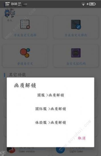 2、解锁画质和一键修改画质的快捷功能,可以瞬间让玩家们来提升画质;