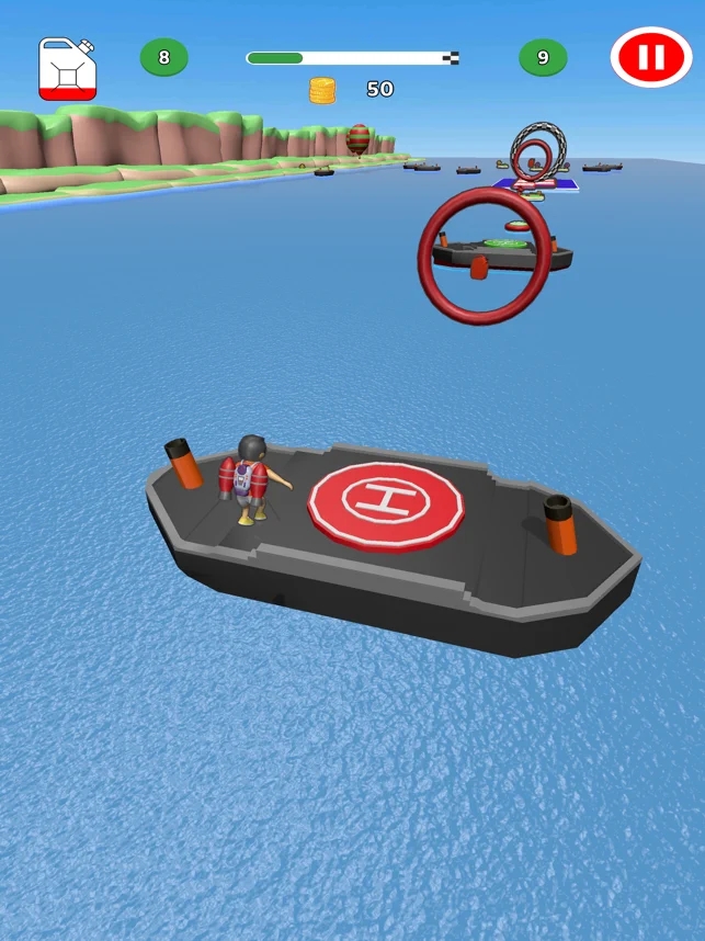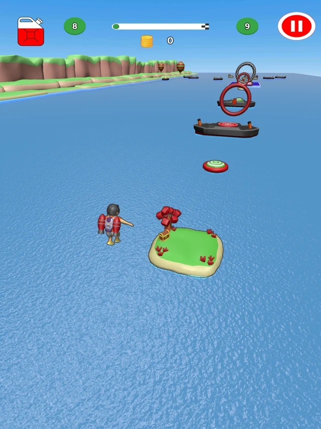 控制你的喷气背包,飞越障碍物到达终点线,jetpack是一款智能可穿戴设备,您可以使用它将自己提升到空中,明智地使用你的燃料,并降落在一个岛上,以补充你的油箱,你也可以飞越含有燃料的环来补充燃料,有几十个令人兴奋的障碍,将挑战你的喷气背包骑术,只需轻触以激活喷气背包,并在燃油耗尽时释放。