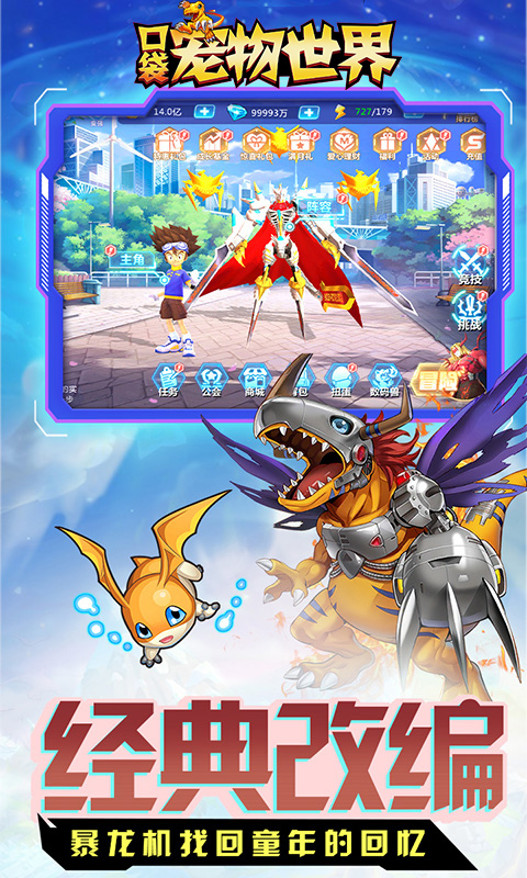 超人气动画,数码宝贝复刻,亿万粉丝童年回忆,被选中的孩子们,准备好进入《口袋宠物世界》。百款3D精模萌宠,亚古兽、加布兽、天女兽、天使兽再次齐聚,等你召唤!多线程进化、世界BOSS、各种独创玩法乐不停。超丰厚福利礼品感恩赠送,奖品堆起来能绕数码世界三圈!