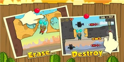 1.可以擦掉泥土让主角飞出去、点击火箭发射来摧毁障碍物,根据每个关卡不同的机关陷阱,操作的方式也不一样。