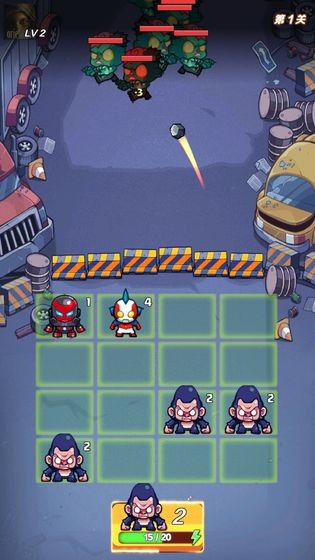 2、关卡中都是由各种各样的英雄组成;点击相邻同色的方块,消除通关,完成任务;