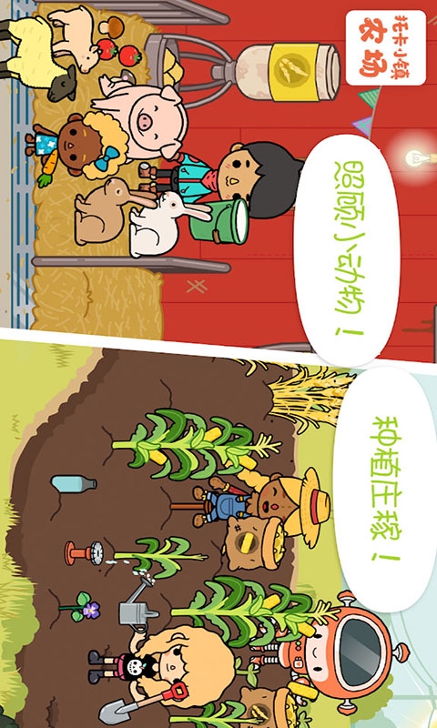 托卡小镇农场中的四个地点将为您带来农场故事的所有元素。去畜棚照看动物,给它们喂食后再帮它们清理便便!照顾完动物之后回到家中,饱餐一顿之后拿起班卓琴,来一次即兴表演。好好休息一晚,第二天再前往田地里照料庄稼。收获作物之后前往商店,卖掉食物之后可以制作新产品并购买商品!