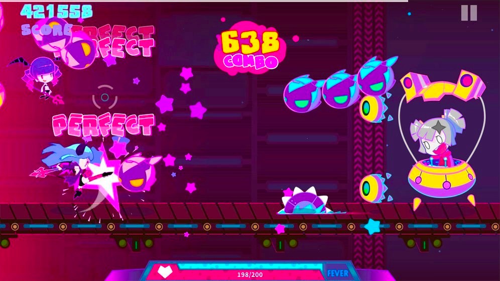 1、一款音乐酷跑类的游戏,跟随音乐的节奏跳动起来,把出现在前方的怪物给消灭掉。