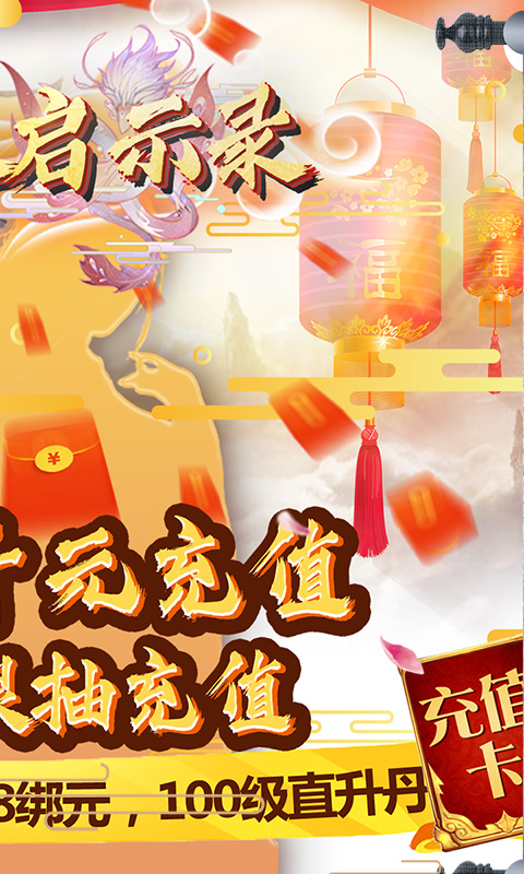 1、上线送VIP9,千元充值礼包,绑元*128888,银两*1000万,100级直升丹!
