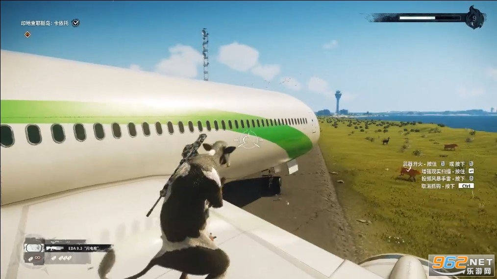 3、非常独特的趣味动作射击游戏,开局就有勾爪和滑翔伞附带;