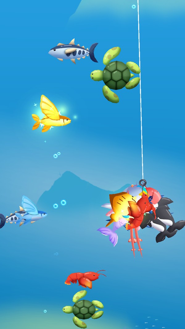 2、模式很简单,没有大脑水平的设计,只需要保持钓鱼就可以,越多的鱼你就有更多的金子;
