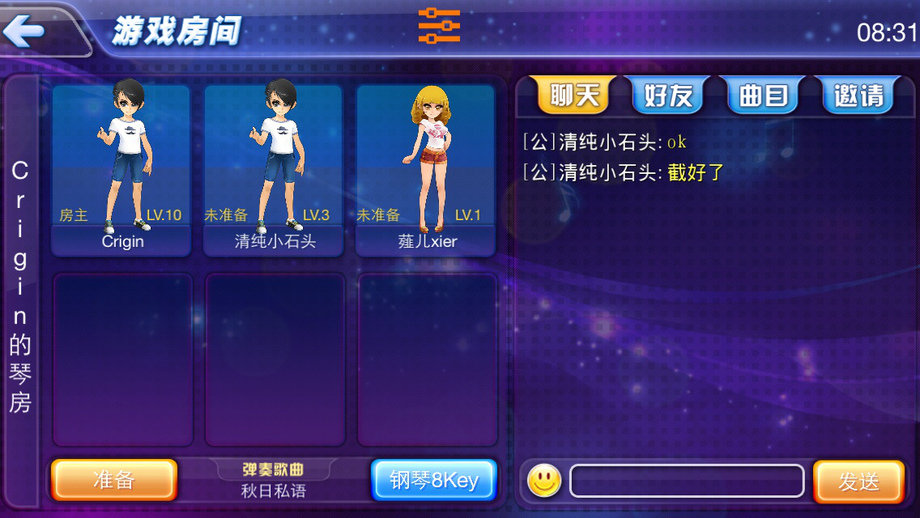 3.打开键盘:如果你已经会弹某些曲子了的话,那就在这里大显身手吧。键盘分为上下两层。