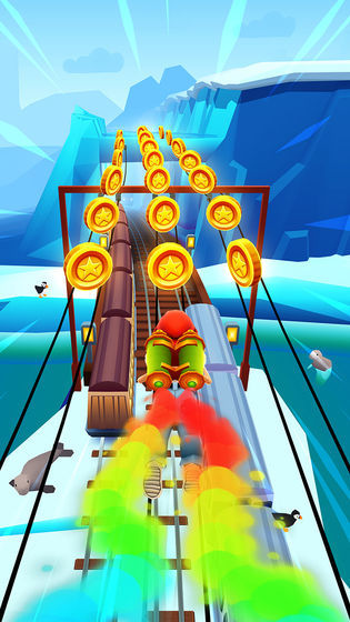 玩家扮演的角色将躲避列车管理员和他那只狗的追击,并在铁路见飞快穿梭收集金币。游戏画面色彩鲜艳精美,优化了高清图像缓解视觉疲劳。