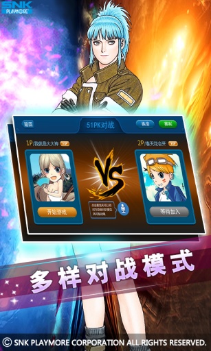 拳皇972019最新安卓版是由SNK授权给武耀科技(以下简称51pk)开发的一款街机对战游戏,武耀科技在原游戏的基础上,加入了一系列的玩法,使得游戏更适合于广大的玩家群体。