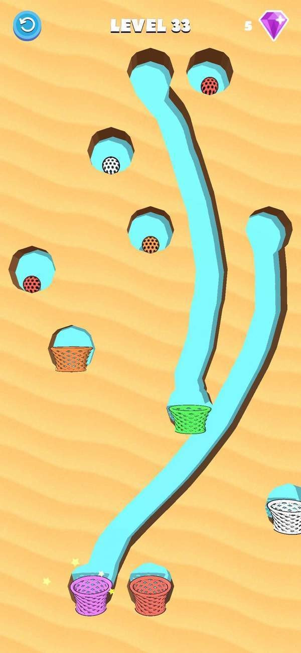 挖掘和排序游戏是一款很好玩的休闲益智闯关类小游戏。在这款游戏里,玩家可以尽情感受这个卡通世界带给你的乐趣!在这里,玩家需要在小球运动的道路上挖隧道,让它们可以准确地进入颜色相应的彩盒里!游戏玩法简单,快下载来试试吧!