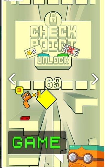 - 可以调控方块人脸的跳跃位置和方向,蓝色为跳跃键,黄色为左右按钮