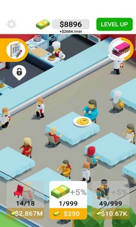 2、成为游戏中的管理者,管理自己的餐厅,招募更多优质的员工来帮助你管理餐厅,一起带领餐厅走向更好的发展;