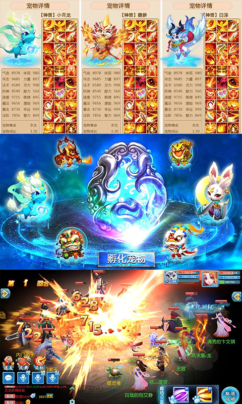 百种特色萌宠收集,携宠修行,Q萌可爱专属强力萌宠养成,有颜有料,更有独具特色的外观变化系统,宝宝变异属性爆表,百变
