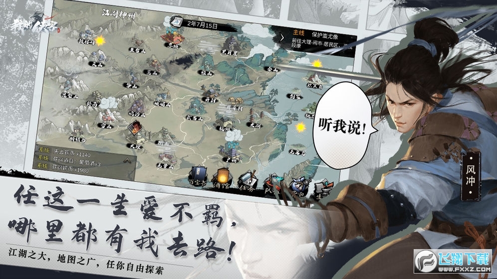 偌大的世界里,了解各地人文风情,参加节庆活动,游历各色山河大川,寻找神秘商人,探访门派秘境!