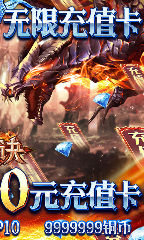 1.上线送500元充值卡+VIP10+58888绑钻+9999999铜币