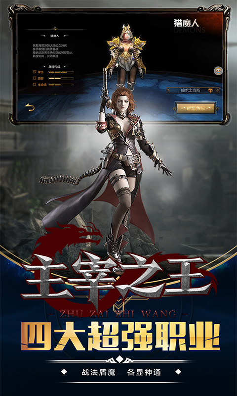 主宰之王手游是一款魔幻题材的RPG战斗手游。酷炫的时装造型,黑暗华丽套装,绚烂惊奇羽翼,带您体验前所未有的魔幻世界。即时战斗的野外战斗,带来激情热血的战斗体验!精致逼真的暗黑画面,多种独具特色的玩法,带你登顶最强王者,畅享极致战斗。不同的卷轴任务,邂逅天使女神,丰富多样的系统斩杀各种弄地狱魔鬼。可爱威猛的萌宠,霸气威武的坐骑亦将与你去征战魔幻世界。