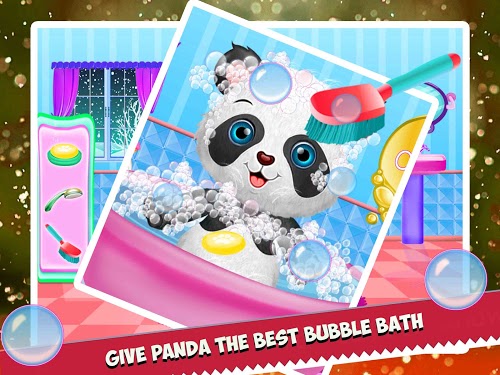 2、在喂养和照顾熊猫的餐厅喂养熊猫宠物,在虚拟宠物游戏中将熊猫带到宠物洗澡间;