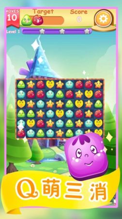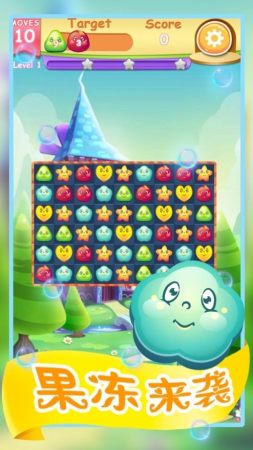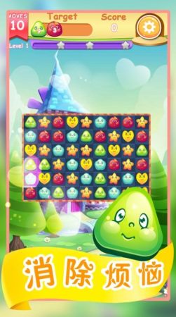 1.将三个颜色相同的果冻连在一起就可以消除了,是不是很简单,有的时候还有爆炸特效;