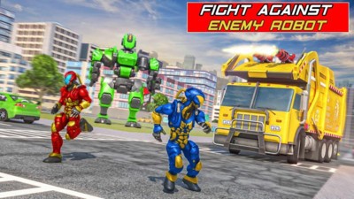 在射击机器人大战中拯救未来派城市。作为飞行机器人的地铁游戏–在机器人与卡车的战斗中转变城市垃圾车。扮演并成为救援英雄中的机器人格斗游戏的超级英雄操纵垃圾卡车机器人-在卡车驾驶中.这个垃圾卡车机器人游戏是射击游戏的狂热者。