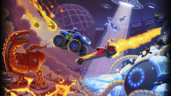 撞头赛车破解版无限车是一款横版像素风格的休闲赛车游戏