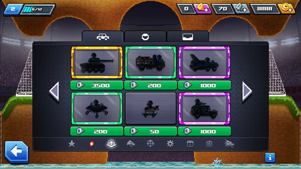在竞技场上驾驶越野车、垃圾卡车和f1赛车。每种车辆都有自己的优胜劣势。游戏有三种模式:双人、单人,以及山丘之王比赛。在足球游戏模式中,你要用你的车粉碎巨大足球射门得分!