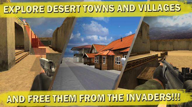 1、在激烈的致命战斗中与凶猛的敌军作战,拯救沙漠城镇和村庄,并为平民带来和平;