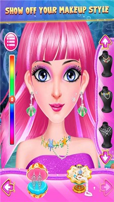 3、滑块来改变它的布料颜色,带声音的终极背景音乐,发型和鱼尾以及许多配饰,项链等等。