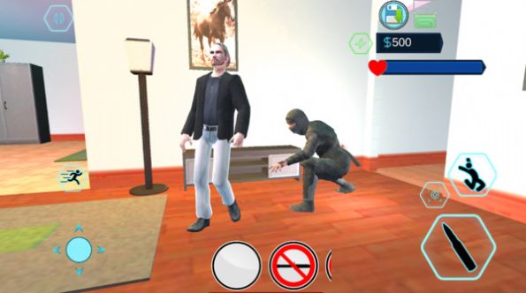 1、可以抢夺富人,帮助穷人并隐藏富人家庭。它使用3D引擎渲染游戏画面,玩家成为女主人公;