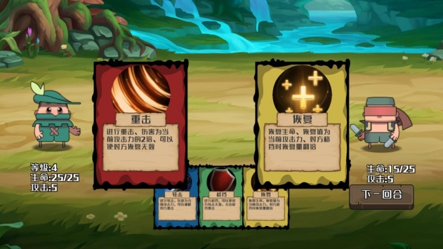 重击:造成伤害,伤害为轻击的2倍,可以使对方恢复无效