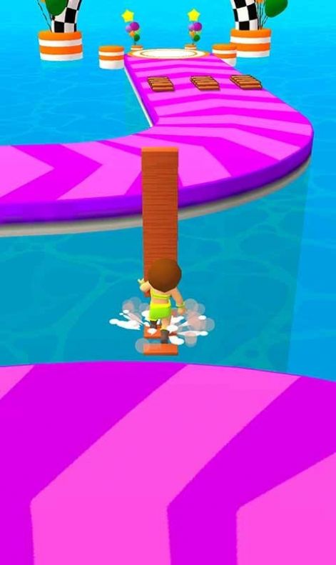 快乐冲冲冲游戏拥有比较独特玩法内容的跑酷竞赛,设计不同的跑道最后顺利去完成任务,根据每一个不同的关卡内容需要搭建木板从而更快的到达终点,道路上面每隔一段就会拥有很多的木板可以自己捡起,沿途一定要寻找机会去进行抄近道更快速超越所有人,收集木板和抄近道都是需要同时进行的。