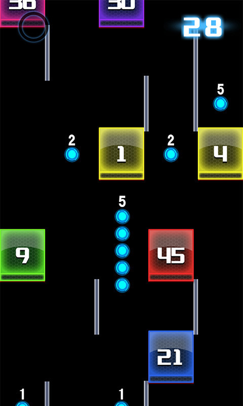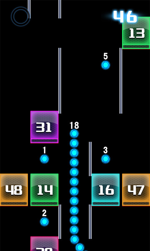 游戏画面由黄色小球和若干富有质感的彩色方块组成,玩家需要操作扭动前行的黄色「长条」——蛇,尽可能吃掉足够多的豆豆,因为标有数字的彩色方块会强行收“过路费”——消耗你的豆豆养料。