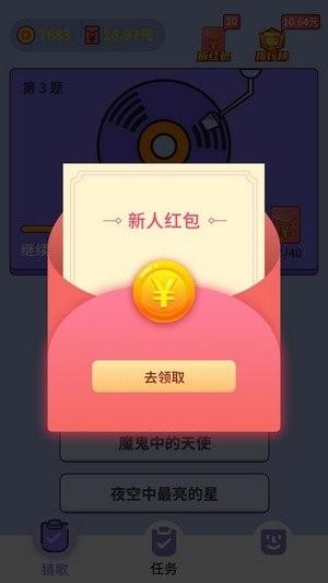 每个人猜歌,一款好玩儿的猜歌赚钱类大红包游戏。在这里款人人猜歌红包版游戏中,为大家采用了經典的猜歌赚钱类游戏。游戏中大家可能赶到由多位游戏玩家构成的房间中,在这里你的每日任务就是保证自己能够快速的回应出恰当的歌曲名字。大家在这里还可以开启不一样的方式来增加自己的游戏乐趣。