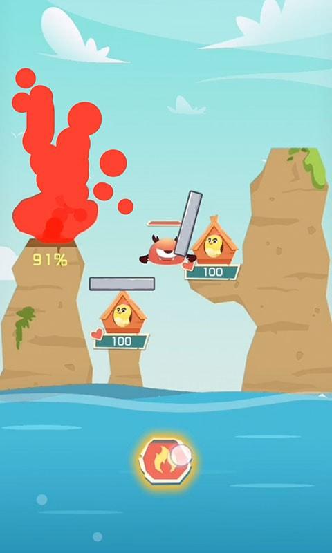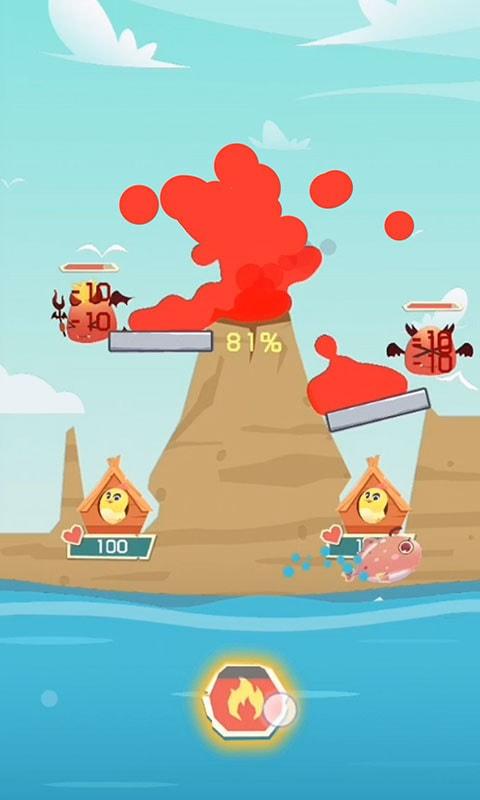 在海洋中间的一个小岛上,生活着一群漂亮又可爱的小鸟。可是现在有怪物突袭了他们的小村庄。需要你利用火山喷发的岩浆来把怪物消灭掉,拯救小村庄。时间紧迫,快发挥你的智慧把小鸟都救下来吧!