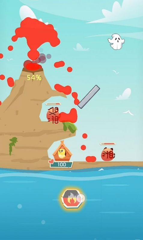 2、现在你需要操作火山喷发来消灭这些换单,敌人的生命条会有显示。