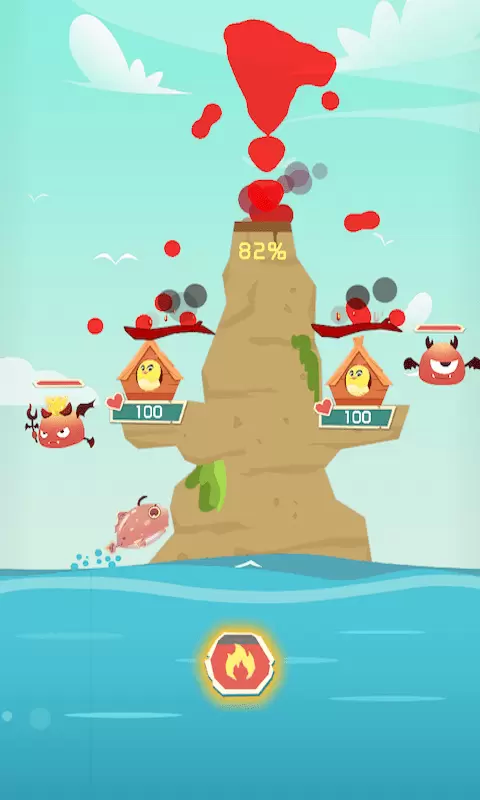 2、现在你需要操作火山喷发来消灭这些换单,敌人的生命条会有显示。
