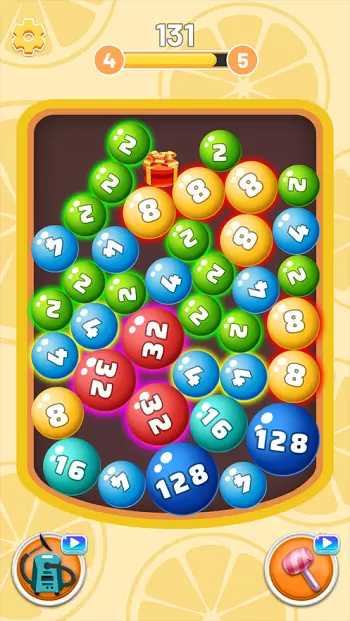1、轻敲容器中的色球,相同颜色的球可以合并并猛烈爆炸。