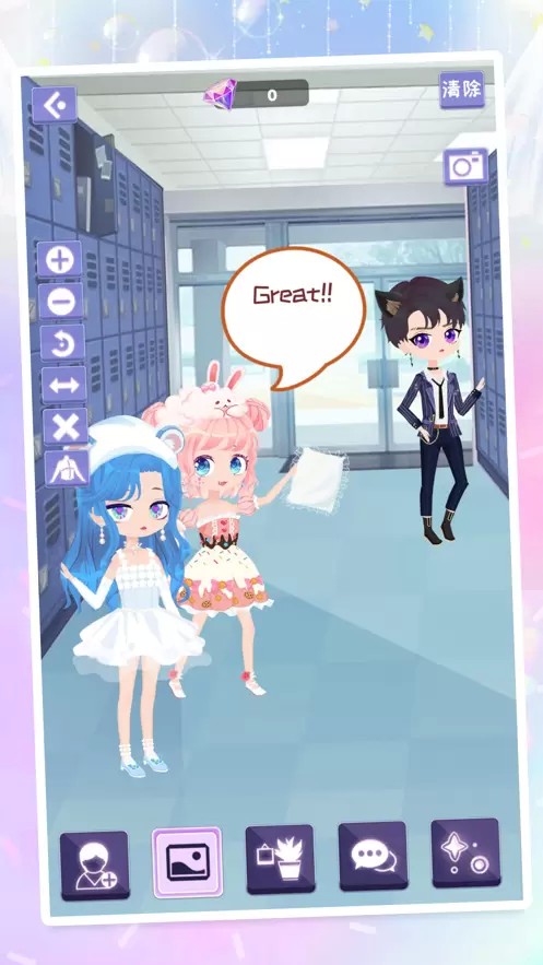 3、可以通过上千种素材创造出心仪的动漫人物形象,然后去各种场景与各种人物NPC进行交谈互动。