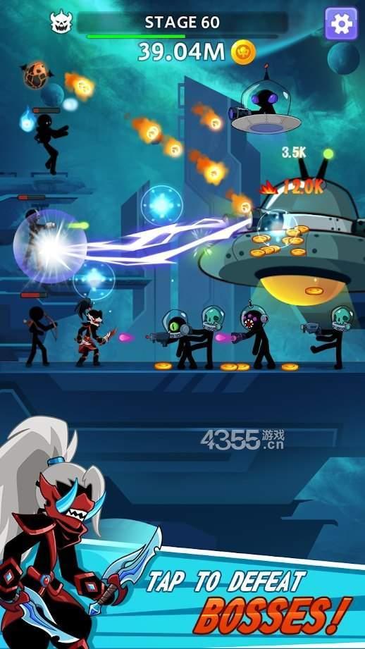 1、游戏之中的火柴人战士可以转职成不同的英雄,获得超凡战力,击败外星强敌;