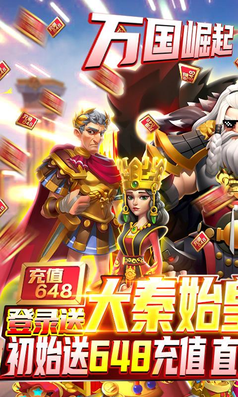 1.上线即送648元代金券,使用获得百万水晶,直升VIP11。超高充值比例1:500!开局即送百万金币,更有毕业神将 神秦始皇 免·费送,超多奖励领不完!