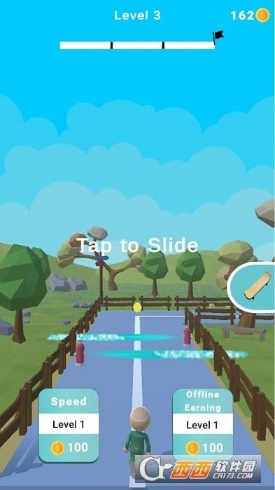 滑板乐趣3D是一款休闲有趣的滑板冒险手游,游戏画面简约,玩家将踩着滑板不断前进,灵活的转向跳跃,避开墙壁和障碍,快来体验吧。