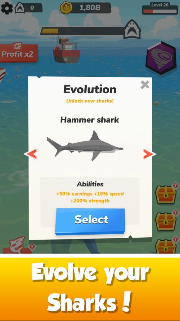 1、提供有很多的鲨鱼角色,可以随意挑选,刺激的吞噬冒险,欢乐多多;