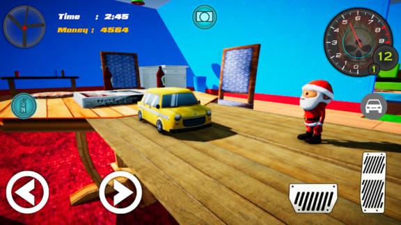 1:游戏中的人物如同卡通玩家一样,玩家在游戏中需要控制角色驾驶玩具车,在房子中到处探索。