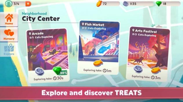 派您的猫来探索您的游戏屋周围的社区,他们会找到并带回零食。