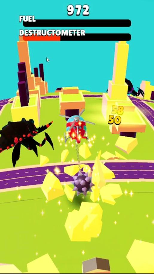 Democopter游戏:现在你要驾驶直升机来完成破坏任务,在你的尾翼上绑有一个巨大的铁球,用这件物品可以轻易的摧毁下方的高楼大厦,你要在规定的时间内完成任务并顺利返回。释放你的压力,通过破坏来让你得到满足,物理效果十分逼真,我们将会穿越不同的国家和城市。