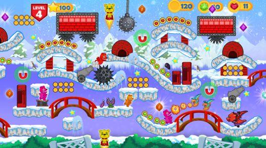 橡皮糖奔跑游戏这是一个可以直接进行横屏操作的闯关跑酷小游戏。而且在这个游戏世界中,你将会成为橡皮小熊的形象设置。利用自己灵活的操控,在这里顺利的躲避很多不同的障碍,同时还要收集更多不同的金币奖励。