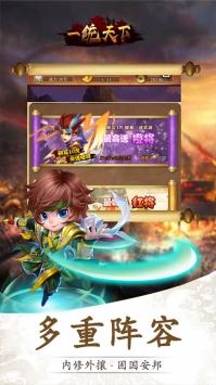 一统天下果盘版是一款十分好玩和励志的三国手游,群雄逐鹿中原,带领你的英雄战队,赢得更多战斗, 轻松击败对手,俯瞰天下,感兴趣的玩家赶紧来下载一统天下果盘版试试吧。